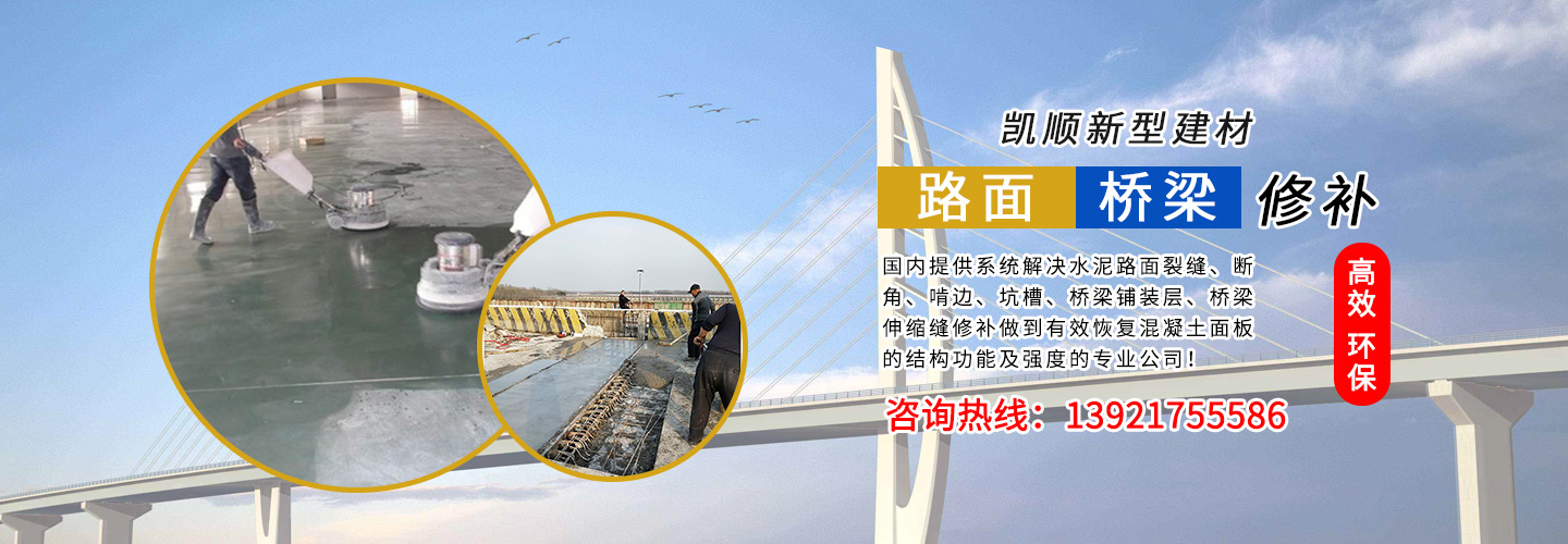 江蘇凱順新型建材有限公司是國內提供系統(tǒng)解決水泥路面裂縫、斷角、啃邊、坑槽、橋梁鋪裝層、橋梁伸縮縫修補做到有效恢復混凝土面板的結構功能及強度的專業(yè)公司!為市政工程、高速、國道、省道、縣鄉(xiāng)道路的改造及大修、中修等大型工程提供了快速、高效、環(huán)保、經(jīng)濟系統(tǒng)方案和技術支持!